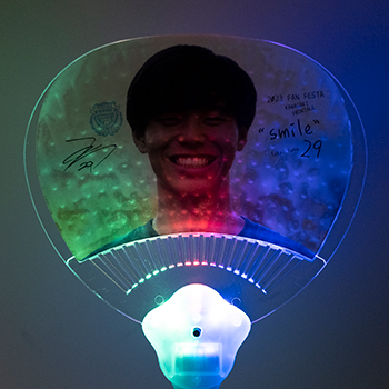 スイッチを押すと川崎市のロゴカラーである3色の優しい光でライトを照らしてくれるグッズです! さらに川崎の7区にちなみ、7パターンの照らし方をしてくれます。今年のファン感は15:00スタートということで、このライトが最高の演出の手助けをしてくれるかも!? お一人1本...。いや両手で2本持ってファン感を盛り上げてくださいね!!