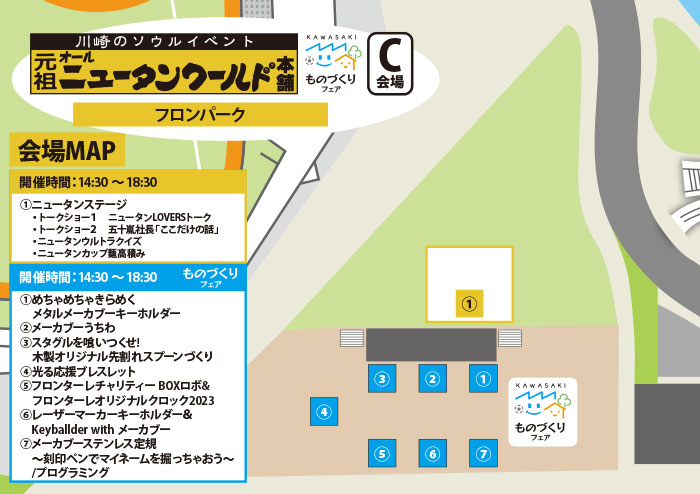◇川崎ものづくりフェア実行委員会:川崎北工業会、川崎中原工場協会、下野毛工業協同組合、高津工友会、チーム等々力、川崎ベイエリアものづくり連合会、Sanodesign、高津高校、川崎市経済労働局、高津区役所(順不同)