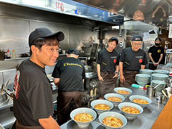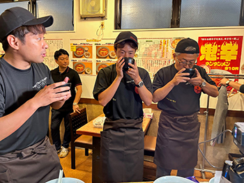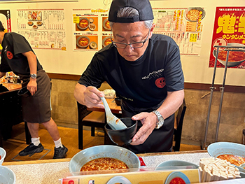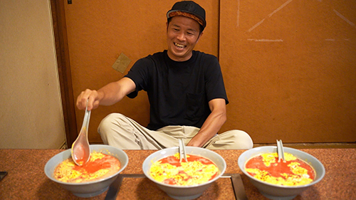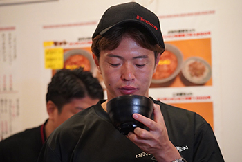 8.12オールニュータンワールドの会場のみで展開する「幻の7番目スープ」作りを実際の店舗調理場をお借りして実施。現在店舗で提供している6種類のスープには使用していない「唐辛子」を数種類用意。選抜大会に参加した3人は、この新種唐辛子の選択と分量調整をしながら、それぞれ「7番目のスープ」を完成。