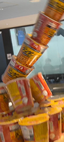 上から急に落ちてくるにんにくをニュータンレンゲで見事キャッチできた方に、ニュータンタン袋麺を進呈!! 手に持つレンゲと上から落ちてくるにんにくに全神経を集中させてキャッチを成功させよう~。