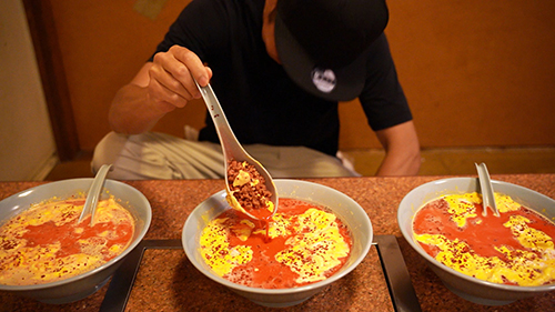 現在店舗で提供している6種類のスープには使用していない「唐辛子」を使ったニュータン幻の7番目スープが完成!(見た目からでは伝わりませんが、ニュータン好きなら味の違いに必ず気付く至極の一杯)