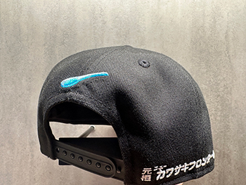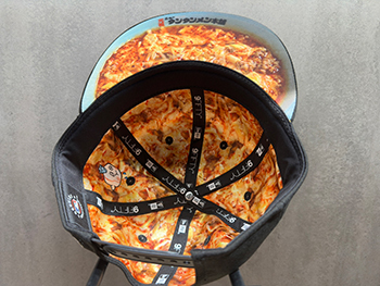 たくさん食べてお腹を満たしているカブレラが溶き卵と麺に絡んで浮かんでいるところや、サイド刺繍には、「元祖川崎フロンターレ本舗」と刺繍し、コラボレーションを強く印象付けます。ニュータンタンメン好きには絶対にかぶってもらいたいキャップです!