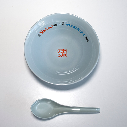 ニュータンタンメンと言えば、あの青磁色のどんぶりと特大サイズのれんげ。今回は、実際に元祖ニュータンタンメン本舗の店舗で使用されているどんぶりとれんげを製造している会社に依頼し、「元祖ニュータンタンメン本舗×元祖ニューフロンターレ本舗」のロゴが入ったどんぶり&れんげセットを販売します!