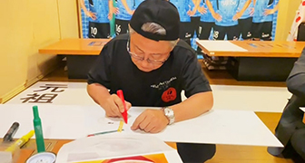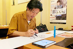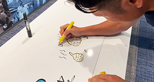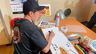 ②「フロンターレと愉快なニュータンマニアたち」が自らイラストを手書きしたサブ看板設置 イラスト作画に参加したゆかいなニュータンマニアの皆さん