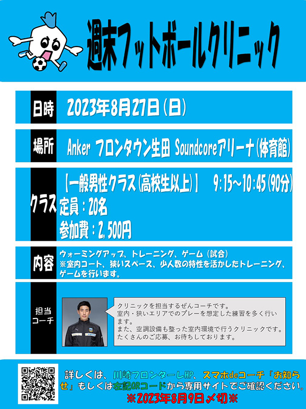 川崎フロンターレ「週末フットボールクリニック8月(一般男性)」係