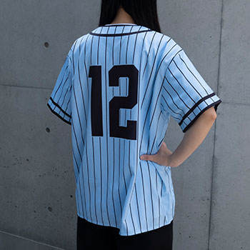 フロンターレカラーをベースとしたベースボールシャツを販売します。前開きなので化粧や髪型の崩れがなく、サッと着られるのが、ベースボールシャツのポイントです!
