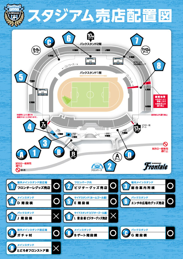 TEL 044-767-6111(営業時間 11:30~21:00/月曜定休 ※月曜日が祝日の場合は翌火曜日がお休みとなります。またホームゲーム等開催日は変更の可能性あり)