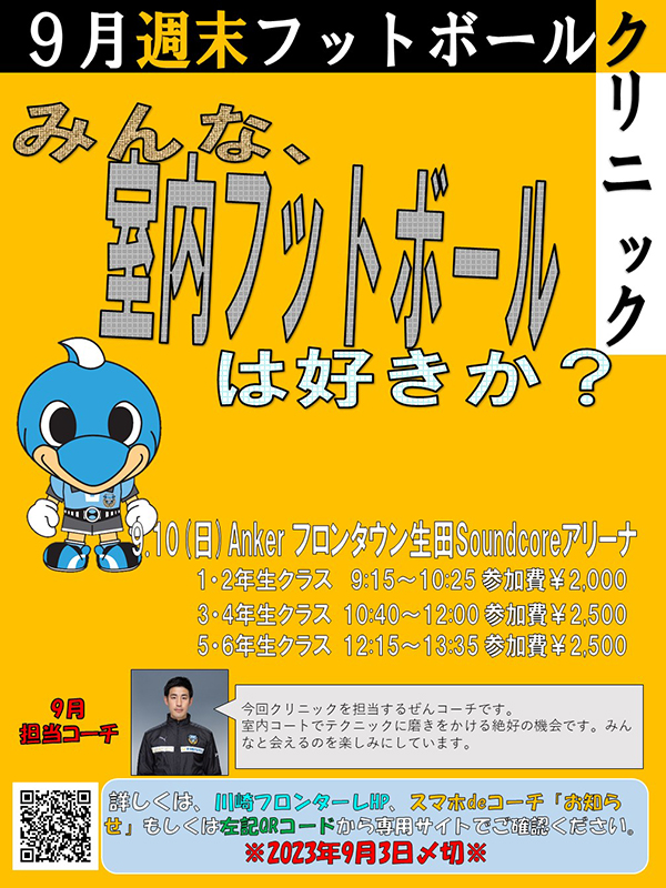 川崎フロンターレ「週末フットボールクリニック9月(小学生)」係