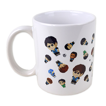 四角の集合で各選手の特徴を捉えた、ピクセルデザインのマグカップです!