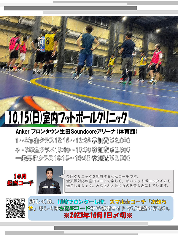 川崎フロンターレ「室内フットボールクリニック10月(一般男性)」係