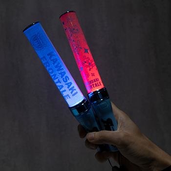 皆様の熱い思いを「色」で表現できる人気グッズのペンライト。どなたでも使いやすいベーシックなデザインから、ペンライトを持ったマスコットたちがデザインされた2種類展開です。グリップ部分もフロンターレブルーになった特製モデルになります!