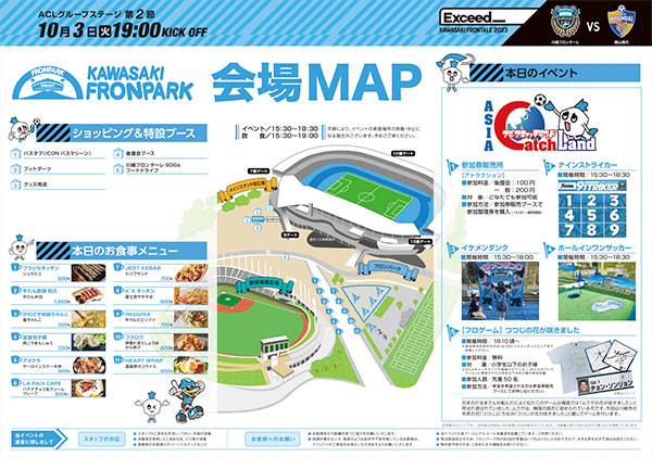 ACLホームゲーム開催記念として、10月3日(火)蔚山現代戦はフロンパークでも“ACL”を開催します! 題して「アジア(Asia)キャッチ(Catch)ランド(Land)」!! アジアの頂点をつかみ取ろうという意味が込められたイベント名になっています!