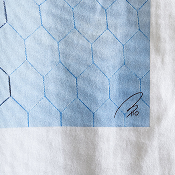 川崎フロンターレオフィシャルグッズショップ「AZZURRO NERO」で働く、写真家・齋藤 翼による等々力陸上競技場に設置されているゴールからの景色を撮影した写真をデザインしました。