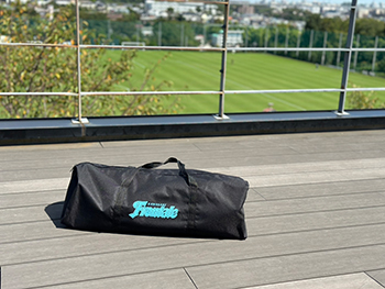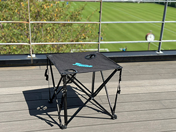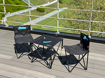アウトドアはもちろんピクニックや公園遊びなどにも最適なコンパクトサイズのテーブル・チェアです。テーブルは便利なドリンクホルダー付きで、チェアは2脚セットになっています。テーブルとチェアをまとめて収納できる収納バッグ付きで、持ち運びに便利です! 汚れが目立ちにくいブラックをベースに、フロンターレブルーのロゴをシンプルにデザインしました。