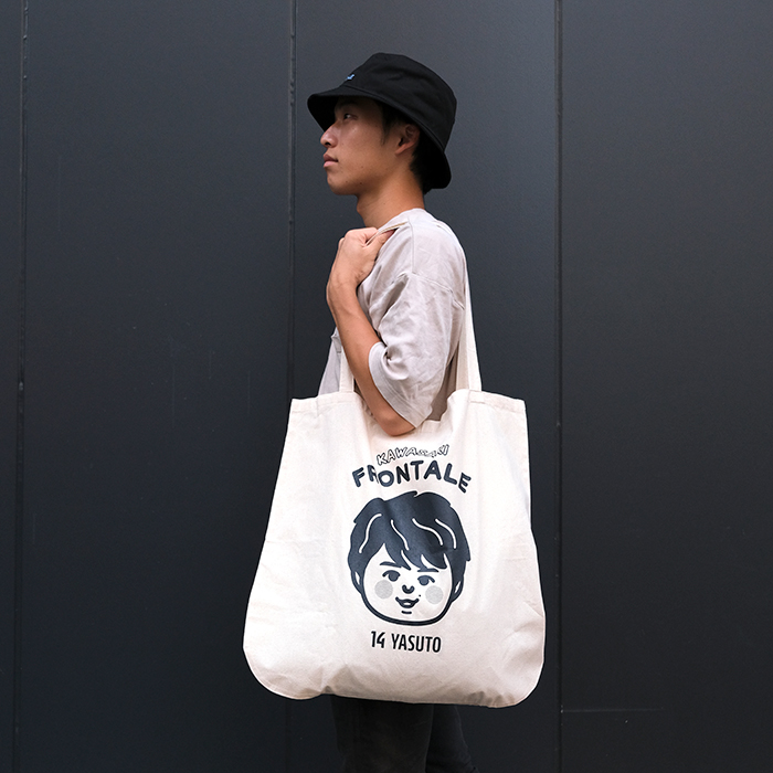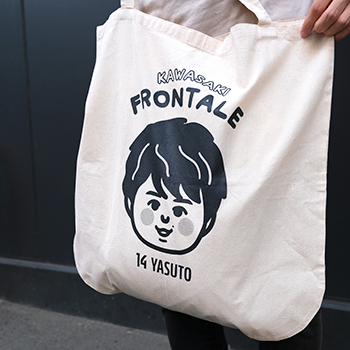 「推しの選手のシンプルなトートバッグあったらいいね!」という声から誕生したプレイヤートートバッグシリーズにイラストデザインが登場です! 適度な薄手の生地で旬のリラクシースタイルにピッタリです。選手の特徴を捉えつつも、どこか可愛らしいデザインに仕上がりました。キーホルダーや缶バッジを付けて、あなただけのオリジナル推し活(押し勝)フロンターレトートバッグを作りましょう!!