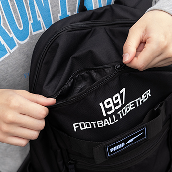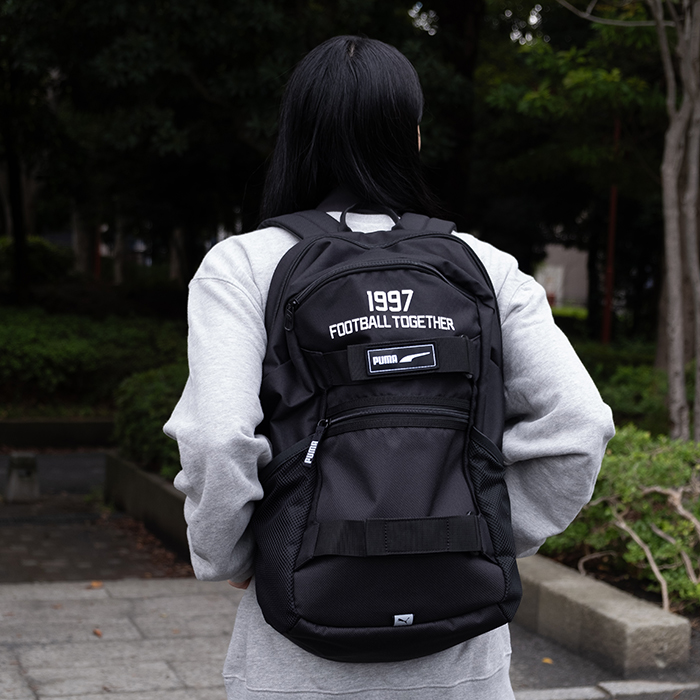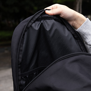 遠征先での使用もしやすいように、収納スペースを多く設けたバックパックです。荷物がたくさん入るのに見た目がすっきりとしています。