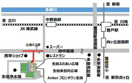 JR南武線「中野島駅」下車徒歩約15分/小田急小田原線「生田駅」下車徒歩15分