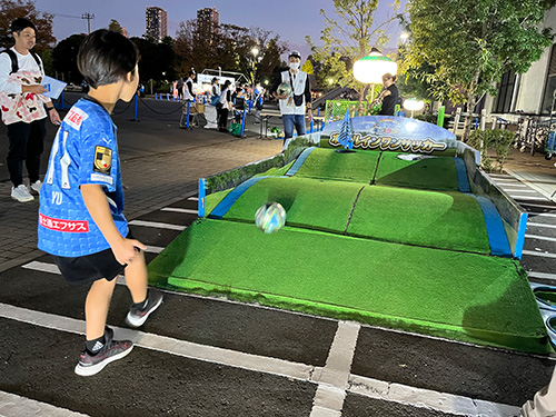 フロンパークでおなじみのアトラクション、ホールインワンサッカーは当日限定の特別バージョンで登場。