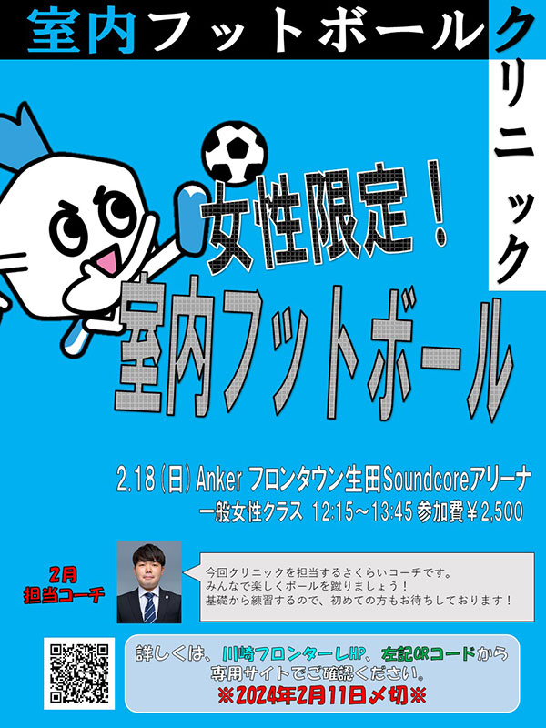 川崎フロンターレ「室内フットボールクリニック2月(一般女性)」係