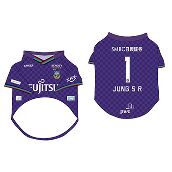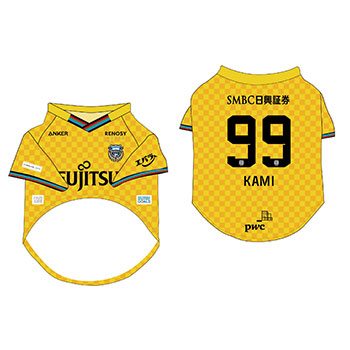 愛犬にお気に入り選手のネーム・ナンバーが入ったウェアを着せこみ、フロンターレファミリーの一員に!