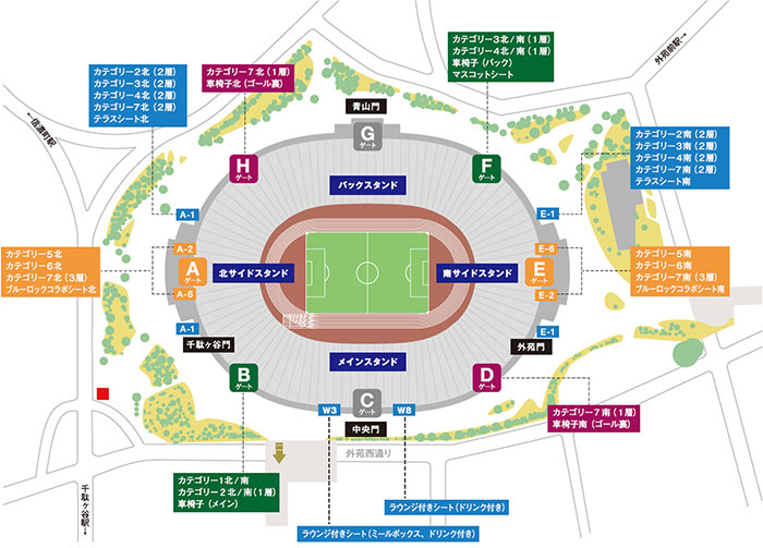 | Hゲート | カテゴリー7北(1層) 車椅子北(ゴール裏) |