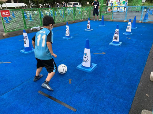 フロンパークではおなじみのアトラクション、ドリブルチャレンジがこの日も登場。等々力での試合が間隔を空けたことでドリブルの感覚も鈍ってしまったかも!?
