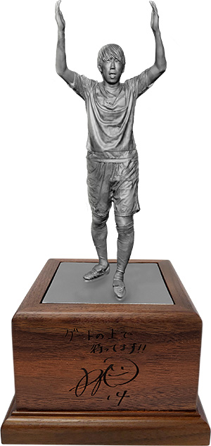 バンディエラゲート上に聳え立つモニュメントと同じポーズをしたケンゴを3Dスキャンしステンレスで再現。オリジナル木箱に入れてお届けします。