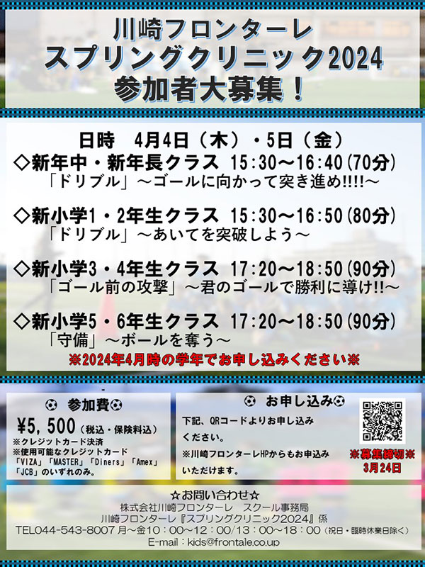 川崎フロンターレでは「FRONTIERS Field」でスプリングクリニックを開催いたします。