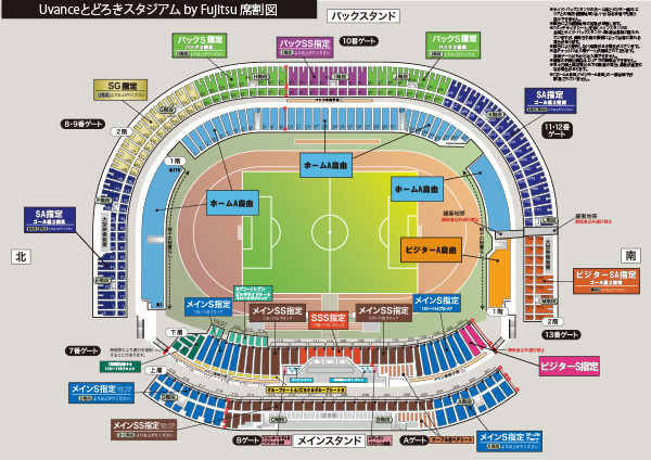 ※座席位置によってはパートナー看板、中継用テレビカメラ、企画シートなどの影響でピッチが見えづらくなる場合がございますので、予めご理解いただいたうえでご購入ください。