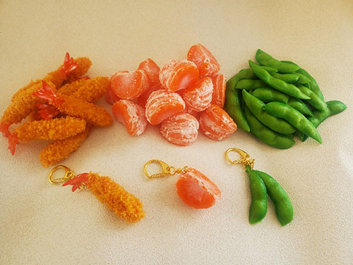 | 商品 | ◇エビフライ:800円(税込) ◇みかん:800円(税込) ◇枝豆:800円(税込) ※本商品は食品サンプルのため、食べられません!! |