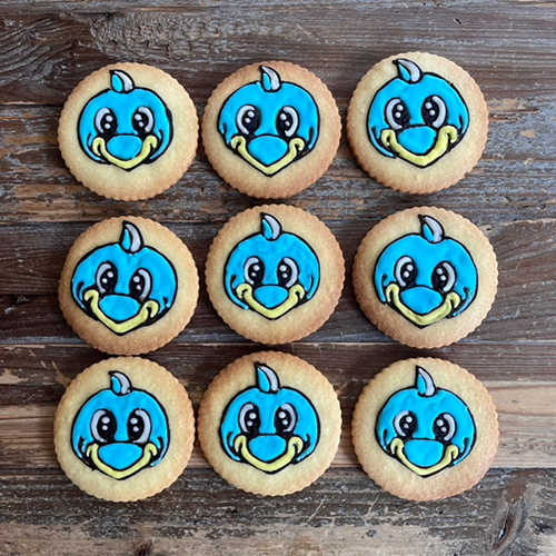 クチュールベイクさんは、武蔵小杉にあるカフェと焼き菓子のお店です。そんなクチュールベイクの人気商品は、お客さんのメッセージを1枚のクッキーに仕立てる「クチュールクッキー」。今回は、ふろん太の似顔絵をデザインした特別なクチュールクッキーを販売!!