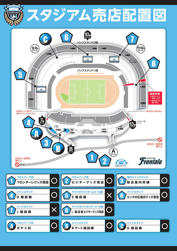 TEL 044-767-6111(営業時間 11:30~21:00/月曜定休 ※月曜日が祝日の場合は翌火曜日がお休みとなります。またホームゲーム等開催日は変更の可能性あり)
