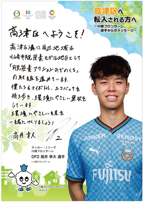 高津区に新たに転入される方に、高井幸大選手の直筆メッセージを掲載したチラシを配布します
