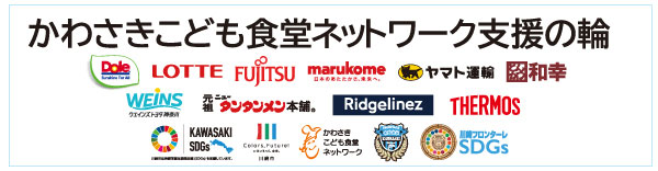 2022シーズンから、川崎市と持続可能な開発目標(SDGs)の達成に向け、相互に連携、協力することを目的とした協定に基づく取り組みとして、かわさきこども食堂ネットワークが抱える課題を持続可能な方法で解決するために、川崎市と、川崎フロンターレを日頃からご支援くださる下記パートナー企業様と共に、かわさきこども食堂ネットワークの支援を開始。