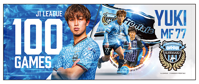 川崎フロンターレでは、3月9日(土)京都サンガF.C.戦にてJ1通算100試合出場を達成したことを記念して、山本悠樹選手「J1通算100試合出場メモリアルグッズ」を川崎フロンターレオフィシャルWEBショップ「AZZURRO NERO」にて受注販売いたしますので、お知らせいたします。