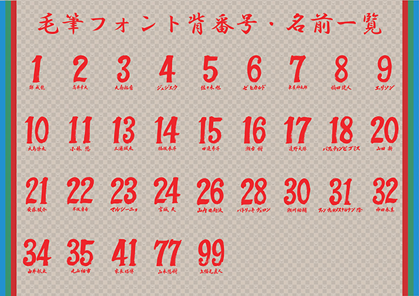 毛筆フォントは川崎大師において、この1戦のために全選手分を浄書いただきました。