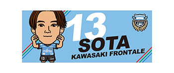 選手をイラスト化したシリーズの新作は「フェイスタオル」。しっかり厚手生地でデザインの発色も良く、選手に向けてのアピールにもおすすめです。