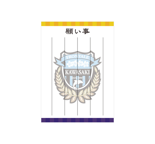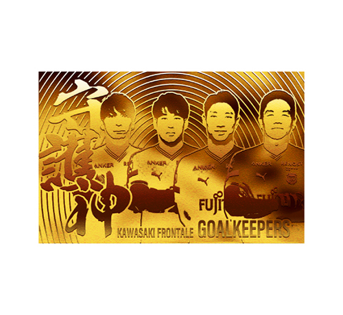 今シーズンのGKユニフォームカラーでデザインしたお守り。ゴールマウスを守りながら、身の回りのことも守ってもらえるかも!? 中には「願い事」が書き込める台紙と川崎の守護神たちがゴールドになったメタルカード入り。