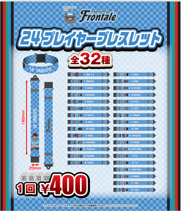 | 販売場所 | 場外フロンパーク(野球場前広場)「グッズ売店」 川崎フロンターレオフィシャルショップ「アズーロ・ネロ」 |