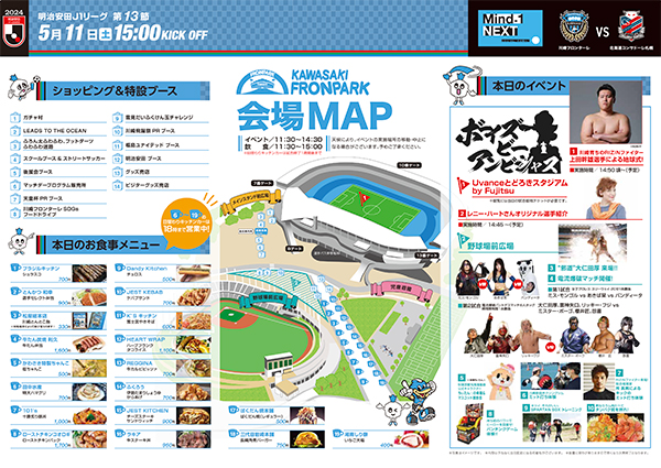 | 場所 | Uvanceとどろきスタジアム by Fujitsu(ピッチ上/場内大型ビジョン) フロンパーク(野球場前広場) |