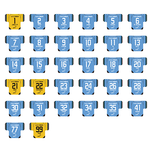 | 注意事項 | ・ユニフォームのネームフォントと千社札のネームフォントは都合により異なります。 ・GK選手は3rdユニフォームでのデザインとなります。 |