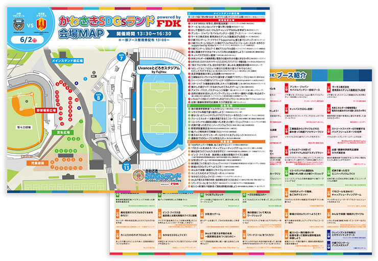 6月2日(日)名古屋グランパス戦では、川崎フロンターレも率先して推進しているSDGsを、みんなで楽しく遊べる、学べる、体験できるイベント「かわさきSDGsランドpowered by FDK」を開催いたします。