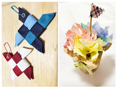 | 内容 | 通学に必要としているご家庭へのリユースランドセル譲渡会と、廃棄予定の制服・ジャージ等のハギレを使った小物ワークショップ(手裏剣型チャームタグとフラワーケーキ)を行います。 また幼稚園服や学生服の回収ボックスを設置します。 |