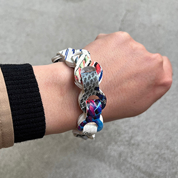 | 内容 | 使わなくなったサッカーボールを抜き型で抜き、その小さなパーツを組み合わせてつくるブレスレットのワークショップです。革のチャームには自分で刻印も入れられます。 当日は使わなくなったサッカーボールや他の競技のボールなどの回収も行います。ボールを回収BOXに入れていただくと100円割引でワークショップにご参加いただけます。(ボールの状態によってはお引き受けできないものもあります) このワークショップは前々回のSDGsランドで実施したKeyballder/キーボルダーにつづく廃棄ボールを活用したワークショップ第2弾です。 ※Keyballder/キーボルダーは合同会社肩車と株式会社SKLOの協業事業です。 |