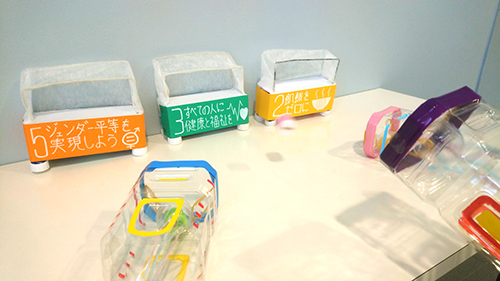 | 内容 | エシカル消費や地球に優しい買い物の仕方について学んだことを展示します。また靴下の廃材を利用したアップサイクルの作品作りを体験できます。 |
