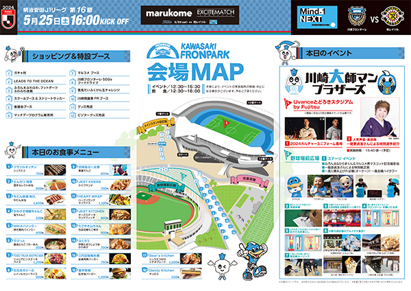 | 実施内容 | 5月13日(月)~5月25日(土)まで実施のマルコメ×フロンターレ「御青印帳スタンプラリー」の最後のスタンプブースがメインスタンド前広場に登場します。