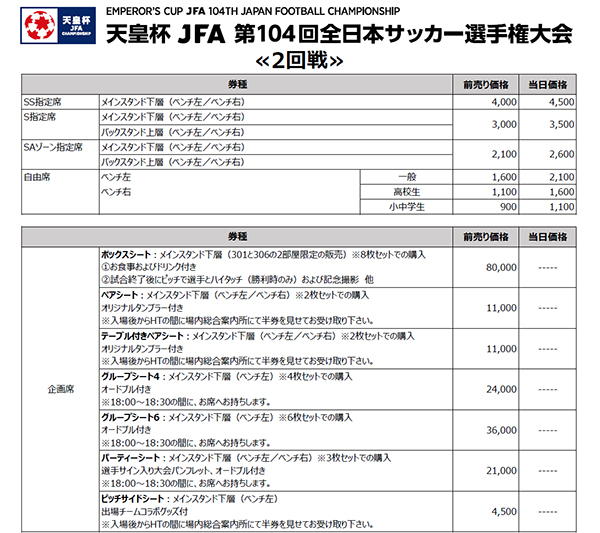 ◇天皇杯はJFA主催試合のため、各種会員割引はございません。