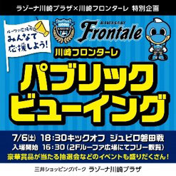 三井ショッピングパーク ラゾーナ川崎プラザ2階「ルーファ広場」にてジュビロ磐田戦のパブリックビューイングイベントを開催いたします。
