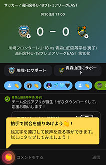 今シーズンもフロンターレアカデミーの選手たちの戦いぶりをタイムリーに皆さんにお届けするため、スポーツライブエンターテイメントアプリ「Player!」にて試合速報を実施します。