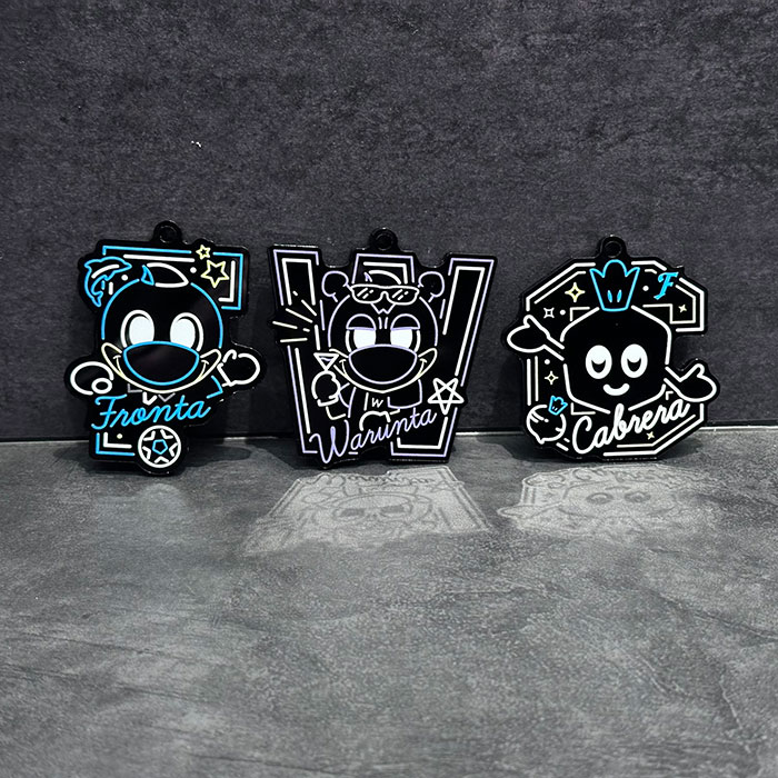 今までありそうでなかったブラックアクリルキーホルダー。ネオン風にデザインされたマスコットが可愛らしく、全種類集めたくなります!!